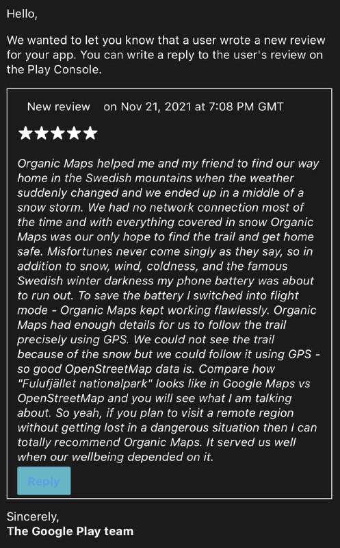 Organic Maps is back on Google Play after a temporary problem 🎉